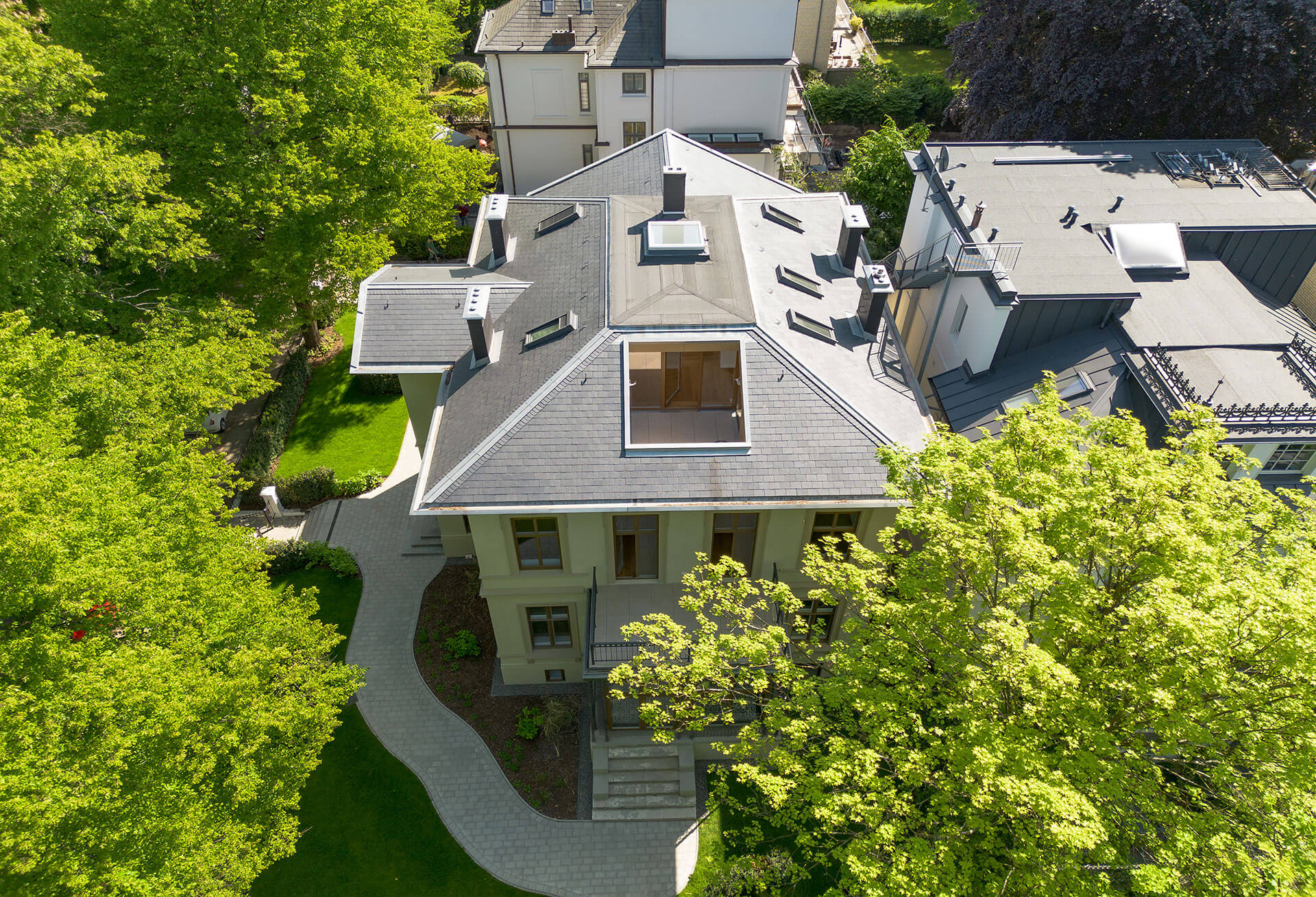 Im Rahmen umfassender Modernisierungen im Jahr 2025 wurde die Villa mit modernster Haustechnik ausgestattet, darunter energieeffiziente Wärmepumpen und Fußbodenheizung unter neu verlegtem Eichenparkett.