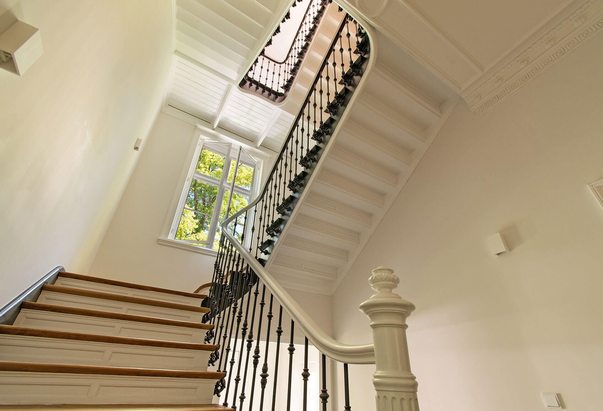 Erleben Sie den Zauber vergangener Zeiten, gepaart mit höchstem Wohnkomfort: Bereits von außen beeindruckt die aufwendig sanierte Fassade im Stil des Spätklassizismus. Innen begeistern aufwendig sanierter Stuck und großflächige Fenster.