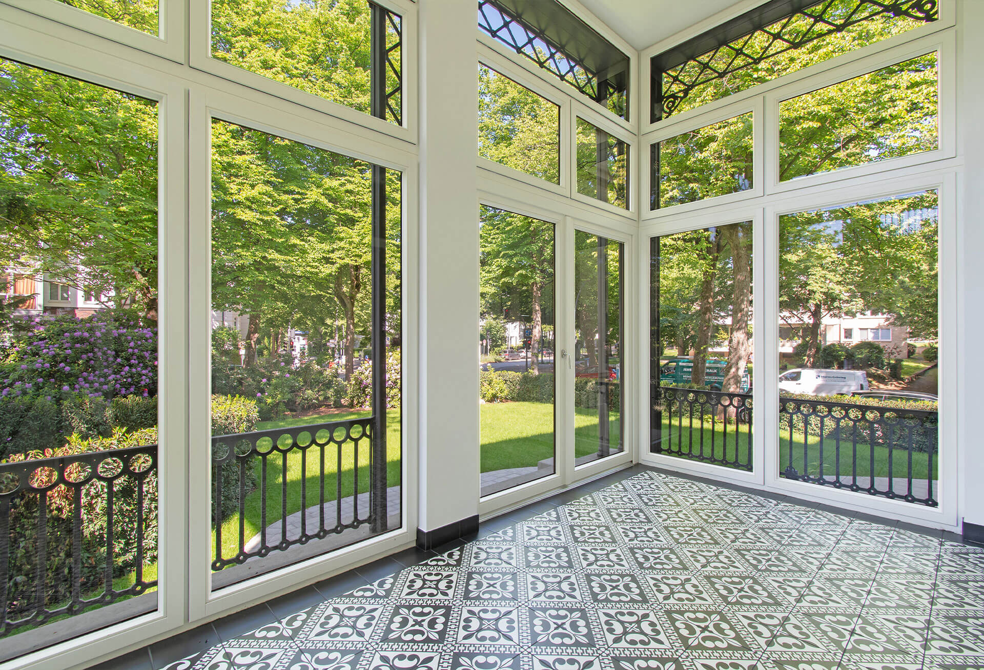 Besondere Highlights sind u.a. der Wintergarten und Westbalkon mit Blick in den großzügigen Garten sowie die geschützte Loggia im Dachgeschoss. Weiteren Komfort bieten drei Einzelgaragen sowie zusätzliche Stellplätze auf dem Grundstück.